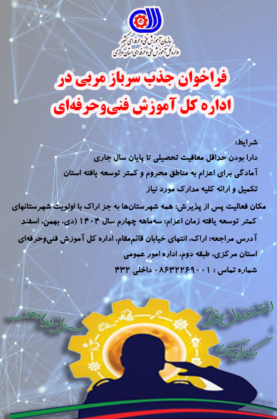 فراخوان جذب سرباز مربی در اداره کل آموزش فنی و حرفه ای